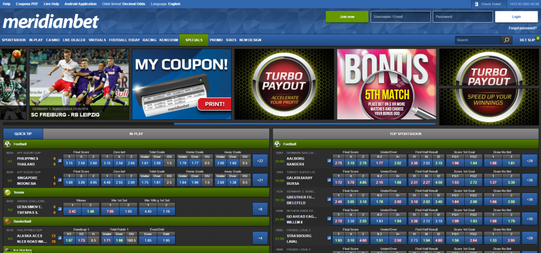 - Clear visibility of bonuses and Meridianbet odds and payouts